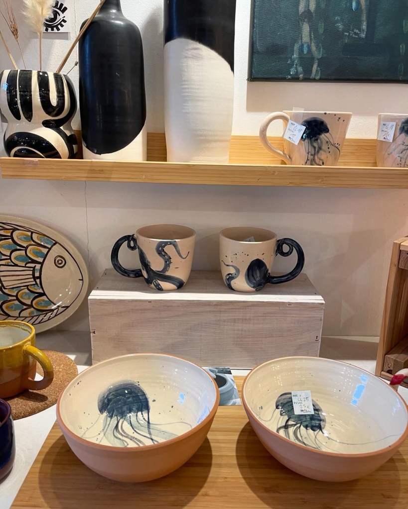 🐙 Et last but not least, notre chouchoute Lucie de l’Atelier Lalula, céramiste illustratrice, nous enchante avec ses créations peuplées de poulpes, végétaux et personnages poétiques.