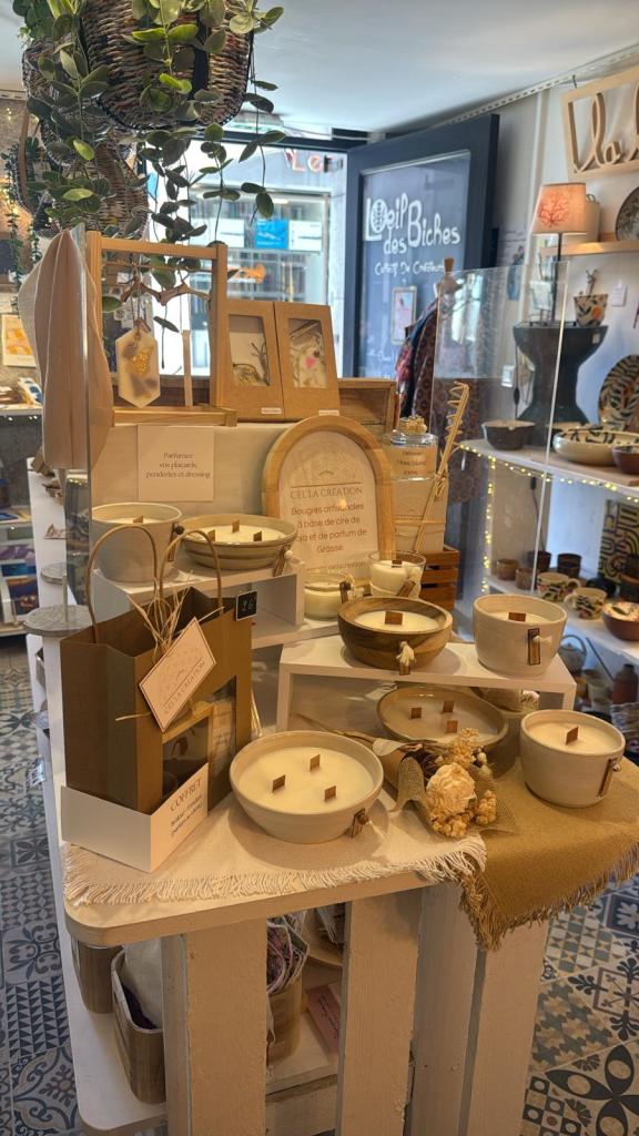 Invitée capsule de la boutique, Cel’la Bougies propose des bougies chic et parfumées aux senteurs de Grasse, réalisées artisanalement pour parfumer votre intérieur avec élégance.